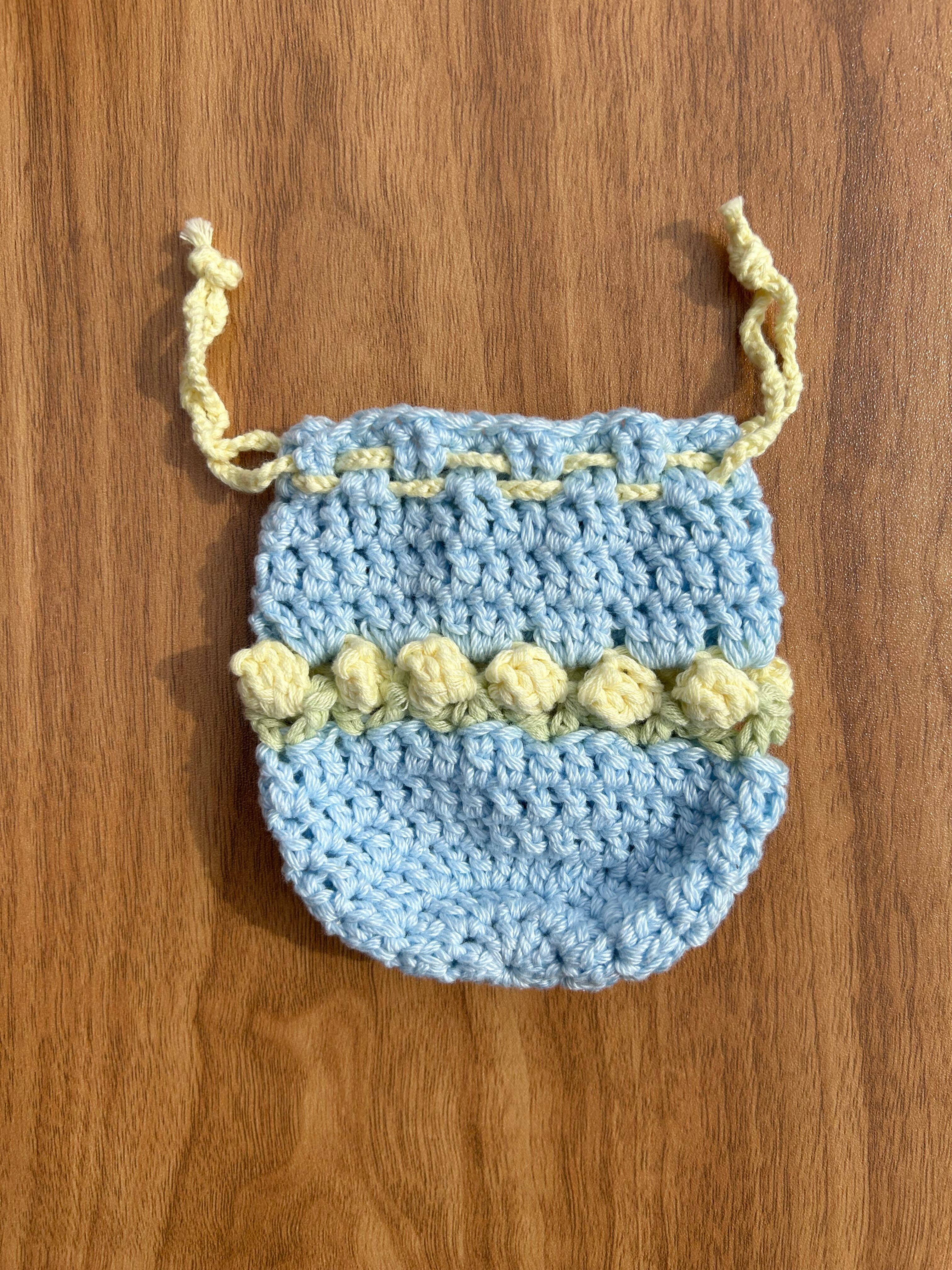 オープン記念【light blue×yellow flower】 まるいチューリップ巾着